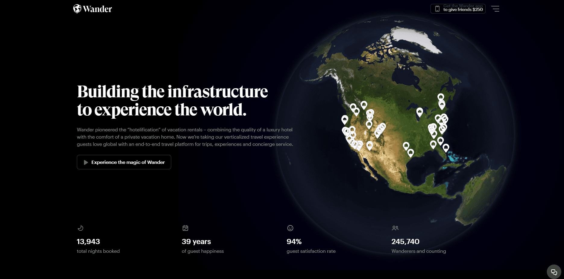 Wander pioneered the “hotelification” of vacation rentals – combining the quality of a luxury hotel with the comfort of a private vacation home. Now they are taking our verticalized travel experience guests love global with an end-to-end travel platform for trips, experiences and concierge service.